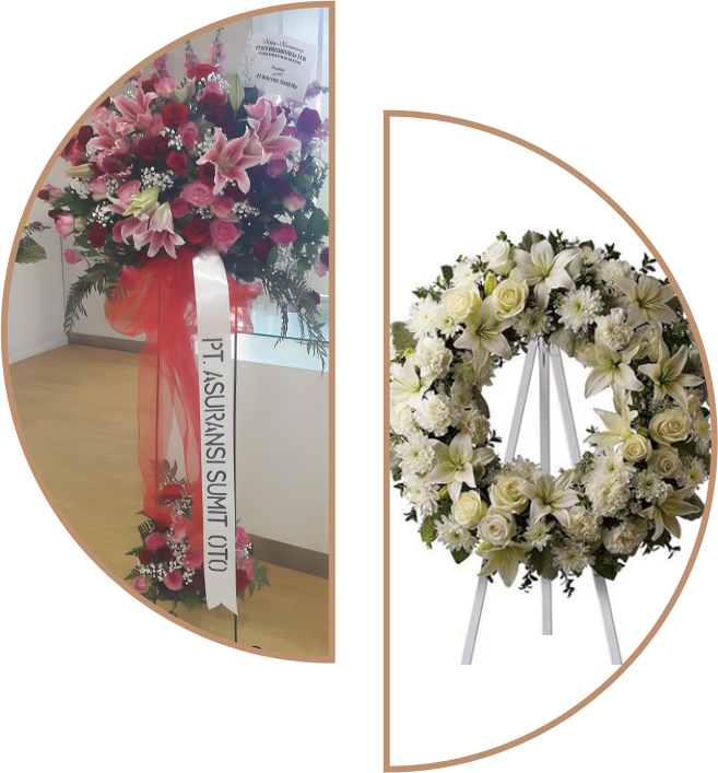 Rangkaian Bunga standing dan Bunga Krans ungkapan duka cita kepada kerabat, sahabat dan rekan bisnis anda.